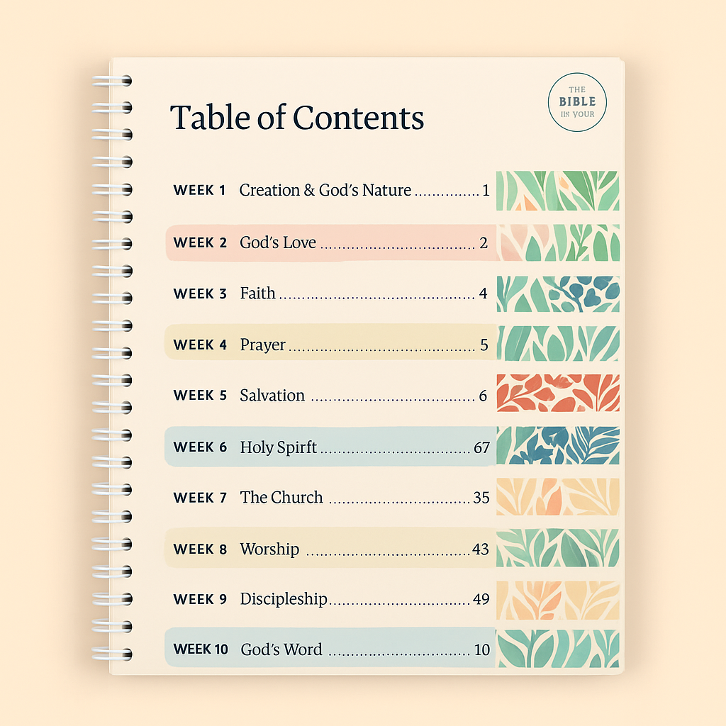 Each week guides you through a new theme — from Creation to Worship — helping you build a deeper, more intentional walk with Him.